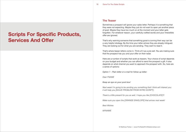 It’s one thing reading the words for a script but how do you actually translate these into a conversation? This bonus includes an MP3 audio track for all of the scripts that you might use on the phone or in a conversation. On each track you hear me taking you through each script in more detail and how I turn the script into a dialogue